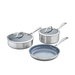 - Includes: 8" 9.5" and 11" fry pans 1 and 2 Qt. saucepans w/lids 5 Qt. dutch oven w/lid 2 bamboo kitchen utensils and collapsible steamer