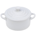 Whether used to serve single portions of a side dish or simply to decorate an empty section of countertop or kitchen shelving the Mini Round Cocotte adds attractive color and classic Le Creuset style to the kitchen or the table.