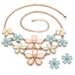 Three layers of delightful checkerboard-cut teardrop cabochon stones grace this necklace. With matching aqua drop earrings. Adjustable " - 1/2" length. Yellow gold tone.