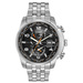Citizen Eco-Drive technology with atomic timekeeping makes this the most accurate watch in the world. This perpetual calendar is radio-controlled in 5 time zones, boasts a 1-second chrono that measures up to 60 minutes, and power reserve. Two-tone stainless steel bracelet and case, 42mm. Black dial features luminous hands and hour markers, three subdials, date window and logo. Eco-Drive E650, Atomic Timekeeping movement. Water resistant to 200 meters.