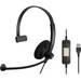 The SC 30 USB CTRL Monaural Headset from Sennheiser is a single-sided wideband headset compatible with global providers of Unified Communications solutions. It features integrated call control and a USB connector. The Sennheiser HD voice clarity offers wideband sound for a more natural listening experience. The noise-cancelling microphone is designed to filter out ambient noise, while the single-sided wearing style allows you to hear what is happening around you. The SC 30's pivotable boom rotates through 340° for wearing flexibility on the right or left ear. The boom arm is bendable, which allows you to adjust the microphone's position. The ActiveGard technology is designed to protect you from acoustic shock and sudden sound surges. The call controls allow you answer or end a call, increase and decrease volume, mute the microphone, redial the last outgoing call, and reject an incoming call. The SC 30 USB headset includes a large acoustic foam ear pad for increased comfort.