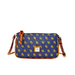 Crisp clean lines of timeless design catches the eye first. A stunning array of rich hues lures one further. Then, the delicate Saffiano texture coupled with contrasting russet leather trim, off-white topstitching, and simple gold tone hardware completes this perfect mixture of tailored, subtle beauty. One inside zip pocket. Cell phone pocket. Inside key hook. Adjustable strap. Strap drop length: 24.25 in. Zipper closure. L 8.5 in. W 1.5 in. H 5 in.