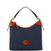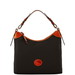 Dooney's Nylon Collection items are lightweight and extremely durable. A more substantial weave provides the extra reinforcement that allows this collection to better maintain profile. High impact hues, shiny gold tone hardware and russet leather trim make this collection the perfect carryall for everyday. One inside zip pocket. Four inside pockets. Center zip divider pocket. Cell phone pocket. Zipper closure. Adjustable, detachable strap. Strap drop length: 9 in. L 12.25 in. W 6.25 in. H 9.75 in.