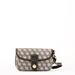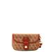 Carry your basics in style with this attractive wristlet made in Dooney's Signature Fabric with leather trim. Dooney and Bourke heart fob. Snaps shut. Detachable wristband. L 6.25 in. W 1.5 in. H 4 in.