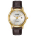 - Shiny ivory dial with gold-tone stick indices and Roman numerals