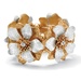 A dramatic triple-strand bracelet of gleaming onyx beads, highlighted with an antiqued floral motif medallion, is the perfect mix of modern and vintage-inspired. Reminisant of a bygone era, yet completely modern this will be a welcome addition to your jewelry box. Antiqued. Silvertone and yellow gold tone. pandable 9" length.