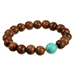 Natural Wooden Beads With Accents Of Genuine Chinese Turquoise Stretch Bracelet, 7.5"