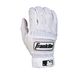 Floating thumb technology increases glove flexibility and adaptability. Neoprene bridge gives added flex across the knuckle back. Quad-flex creasing decreases material buildup between your hand and the bat handle. Contoured asymmetrical wristband shapes to your wrist. One piece leather palm maintains tactility, and provides a smooth, seamless, feel on any bat. Gripster leather improves gripping properties when in contact with moisture of any kind.