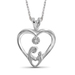 JewelonFire White Diamond Accent Sterling Silver Mom-Child Heart Pendant
