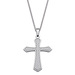 A symbol of faith crafted in durable Stainless Steel. Cross is flat with pointed ends and hi-polished finish. Suspended on a " curb chain. Pendant measures mm (approximately 1 1/2") in length and .5mm (approximately 1") wide. Stainless Steel is hypoallergenic and resists tarnishing.mm x .5mm x 2mm