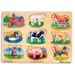 All aboard! This wooden peg puzzle sounds like a steam engine when all nine pieces are correctly placed in the puzzle board! Full-color, matching picture under each piece.