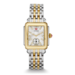 Feminine, elegant and timeless, 46 hand-set diamonds adorn the mother-of-pearl dial of the 18K yellow gold-plated and stainless steel Serein 16 Two-Tone, Diamond Dial timepiece. Roman numerals and the signature MICHELE logo add the finishing touches. The 18K yellow gold-plated and stainless steel bracelet is interchangeable with any 16mm MICHELE strap.