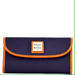 This longstanding collection is one of Dooney's most popular. The pebble grained leather has a distinctive texture that holds up beautifully to everyday wear and tear. The Pebble Grain East West Shopper has two inside pockets, an inside zip pocket, a cell phone pocket, an inside key hook, and an adjustable handle. Handle drop length 9 in. Lined. Magnetic Snap closure. Feet. Measures L 12.5 in. W 7 in. H 11.5 in. Paired perfectly with the Continental Clutch. The clutch has an outside zip pocket, an inside pocket, a license pocket with window, eight credit card slots, and two bill compartments. Measures L 7 in. W 1 in. H 4 in.