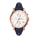 Our Original Boyfriend's heritage design flirts with femininity in a fresh way. A precise chronograph movement and statement-making case make this special watch the accessory for the well-dressed tomboy. Navy blue leather strap and rose gold-tone stainless steel case, 38mm. Silver dial features rose gold-tone luminous hands and index hour markers, three subdials, date display and logo. Quartz Movement. Water resistant to 50 meters.