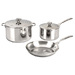 The All-Clad Stainless 5-Piece Cookware Set consists of a useful assortment, and the 3-ply cookware features a thick-gauge aluminum core that attracts heat fast, while the addition of stainless steel ensures even heat distribution for consistent results across the entire cooking surface, all the way to the rim. Even more, its stainless-steel interior with a starburst finish offers natural stick resistance, letting you know when food is ready to release.