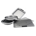 Bring the best in home baking to your family with the Emeril Lagasse 5pc Bakeware Set. Made of aluminum-coated steel, this bakeware combines the quick heating of aluminum with the strength and durability of steel, and is finished with a silicone nonstick coating that means easy cleanup and quick release of even the stickiest foods. These pans are oven safe to 450°F and are easily cleaned up after a brief soaking using a soft, nonabrasive sponge.