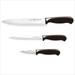 Dig into a juicy steak with this handsome JA Henckels 4-Piece Set of steak knives. The stamped blades are constructed of corrosion-resistant stainless steel with micro serrated cutting edges that never need sharpening. Soft, contoured easy-to-hold santoprene handles provide a secure grip while cutting.