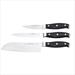 The JA Henckels Forged Premio 7-Piece Block Set has a professional look with a satin finish with forged blade and full bolster. The ergonomic handle design has a comfortable grip and contoured to a full tang with a 3-rivet handle.