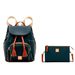 One outside zip pocket. Two outside pockets. Inside zip pocket. Cell phone pocket. Inside key hook. Lined. Magnetic snap and drawstring closure. Measures H 10.5 in x W 6.5 in x L 9 in