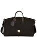 The Bowler Duffle features a compact silhouette with classic Bowler styling and just enough room for a quick weekend getaway. Dooney's Cabriolet cloth is stain-resistant, totally waterproof, and virtually maintenance-free. With an inside zip pocket and an inside cell phone you are able to organize your personal items. Other features include feet and a top zip closure. Handle drop length 8.5 inches. Measures H 12 in x W 18 in x D 6.5 in.