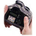 The beauty of the BodyGuard Compact case is that there is a clear back that allows you to maintain contact with most buttons and switches. As a bonus, it can also serve as a noise damper by reducing shutter noise. There are cleverly designed finger access slits on the side that permit you to reach other controls on the camera. Shooting is not an issue since you can either push down on the neoprene or reach the shutter by sliding your finger under the cover. The unit is easily installed or removed, especially when you need to change batteries. Access to your flash and camera strap are never a problem with the BodyGuard. This model of the BodyGuard Compact CB (Clear Back) is designed to carry a compact DSLR body with lens attached, without the optional battery grip installed.